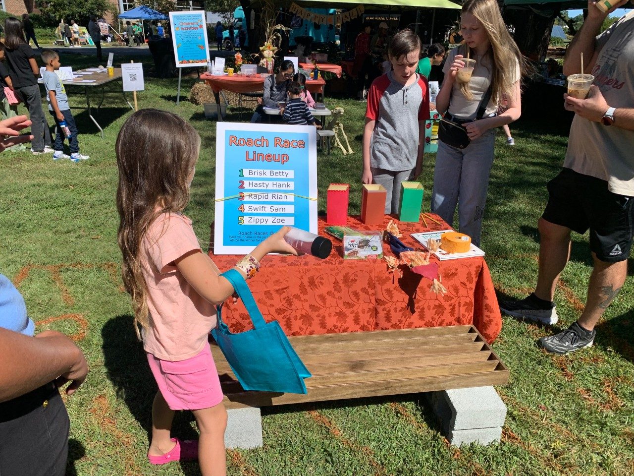 Many people come for the wide variety of plants for sale, including native and house plants. Over 1,000 plants found new homes in the community this year! What stole the day, though, was the afternoon cockroach races. Several races were run while children screamed and jumped to cheer on their favorite roach (giant Madagascar hissing roaches), and parents snapped oodles of pictures. Over 1,200 people attended. We hope to see you at the 26th annual Fall Gardening Festival next year.